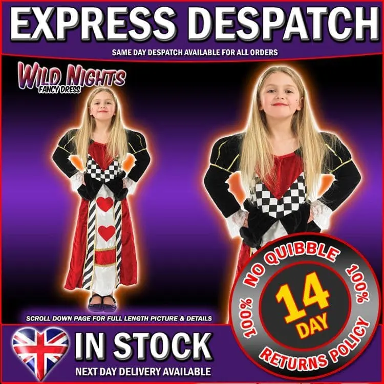 FAIRYTALES & LEGENDS – GIRLS FAIRYTALE QUEEN OF HEARTS SMALL SM AGE 4 – 6 – CHILDS FANCY DRESS COSTUME