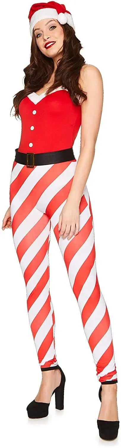 • Ladies Christmas Candy Cane outfit comes with jumpsuit, belt and hat