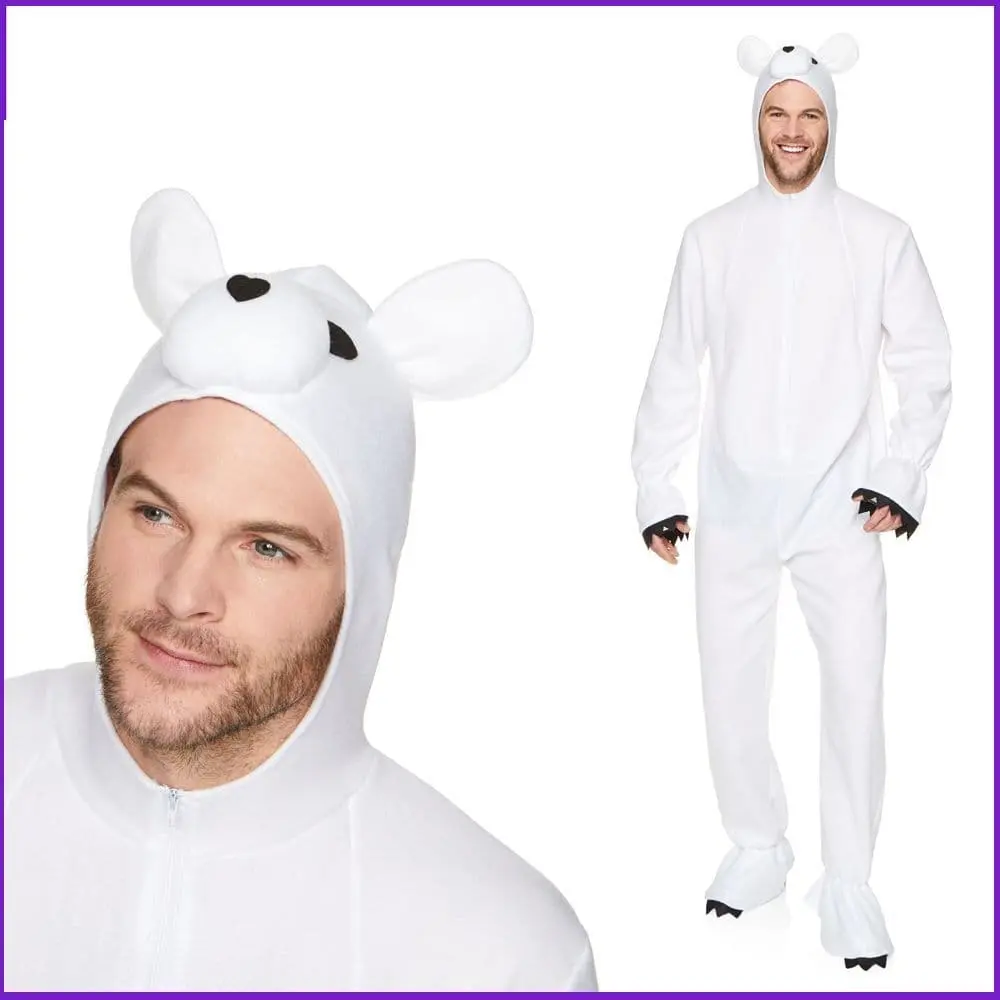 • Perfect for an alternative Christmas costume, this polar bear jumpsuit is an all in one jumpsuit with attached tail and hood with ears