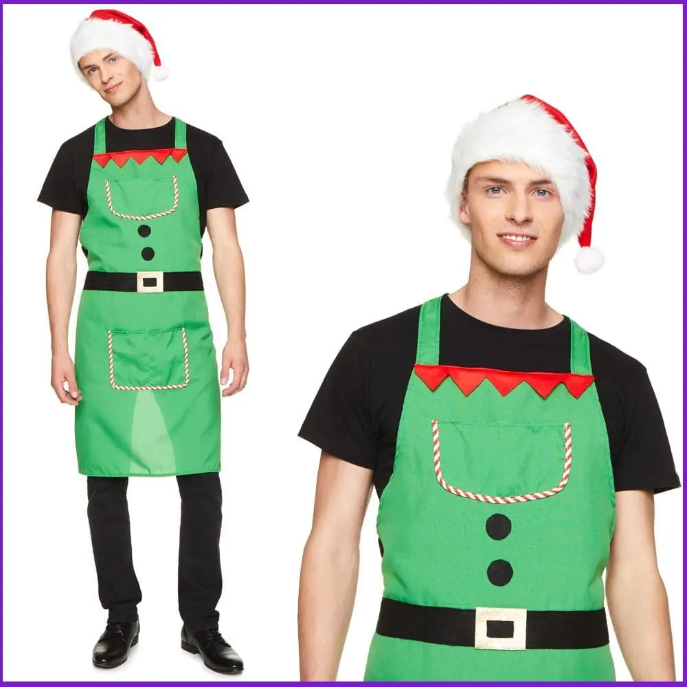 • A quick and easy addition when cooking hte Christmas dinner! A one size fits most Elf design apron