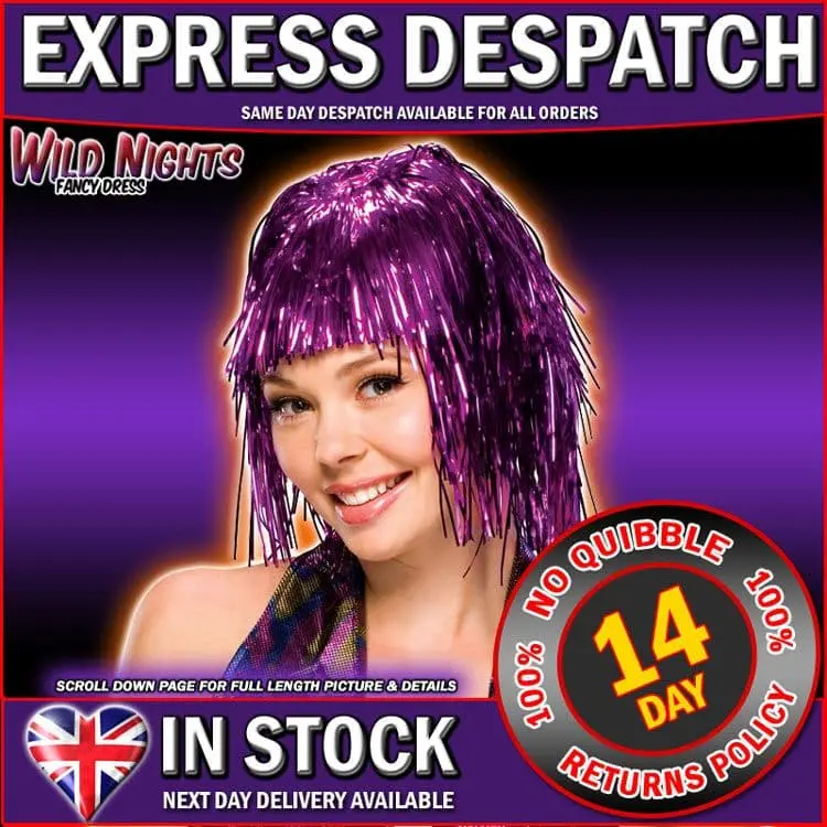 WE LOVE THE 70’S -TINSEL WIG PURPLE – FANCY DRESS COSTUME ACCESSORIES WIGS