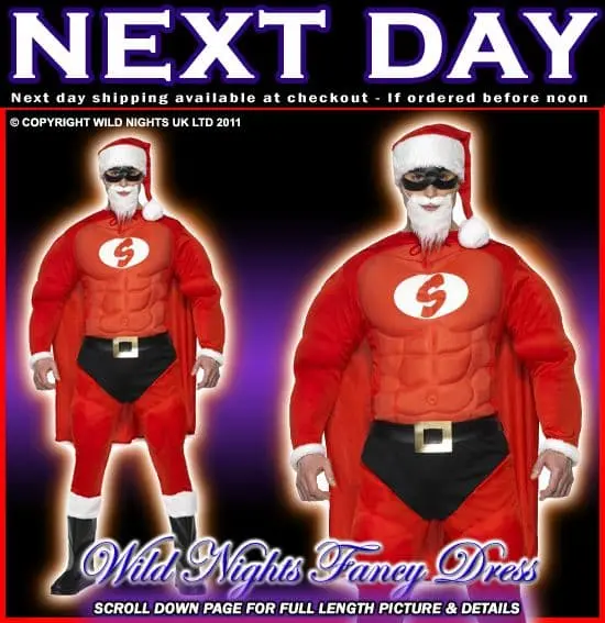 Christmas Fancy Dress Mens Super Hero Santa Costume